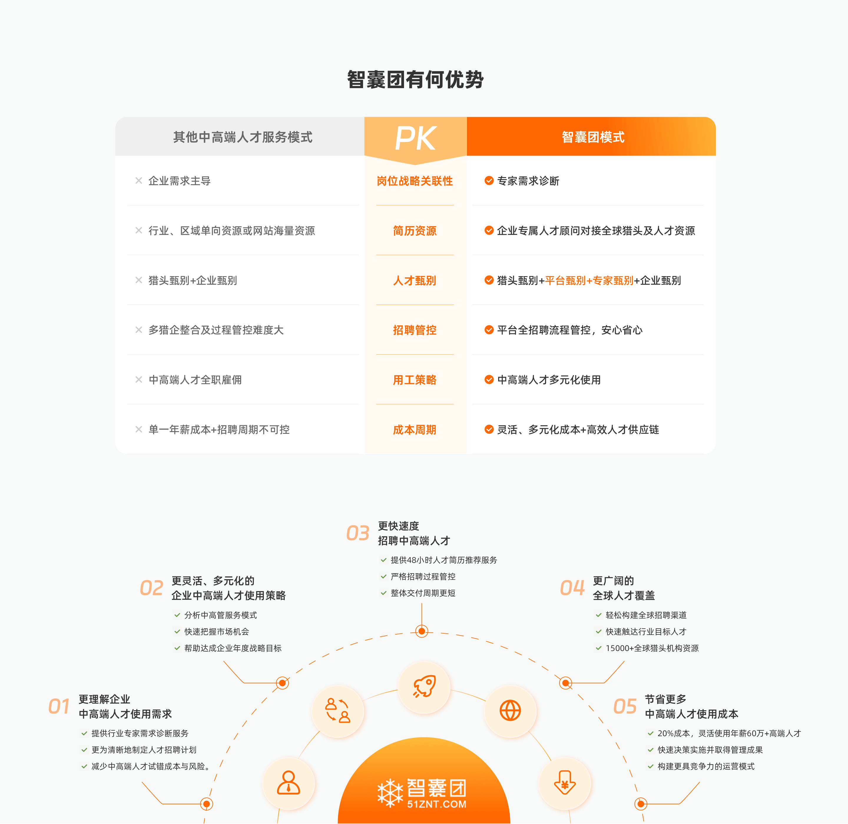 智囊团全面改善并重塑猎头服务,为客户提供“找得准,用得好”的猎头体验。